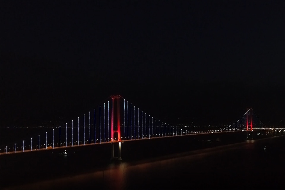 The bridge links the Turkish city of Gebze to the Yalova Province and carries the O-5 motorway across the gulf. The 13 billion bridge is named after Osman Gazi the Ottoman Empires founder and first sultan. With a total cost of about 13 billion and with its outstanding ranking as the fourth longest suspended bridge in the world the Osman Ghazi Bridge extends over the Sea of Marmara and connects between the states of Kocaeli and Yalova shortening travel between Izmir and Istanbul from eight and a half hours to three hours just half.